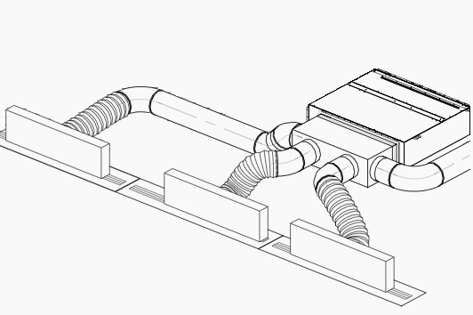 Fujitsu ducted units are available with spigots located on both the front or end of the plenum box or any combination required. Some options are shown but please contact us if you have a different requirement.