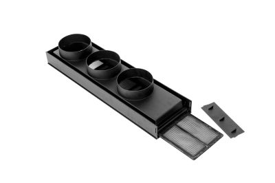 A purpose made return air plenum box designed to fit perfectly to a Haier AD182-242 MSERA(H air conditioning fan coil unit. A frame attached to the air inlet holds the air filter supplied by Haier.